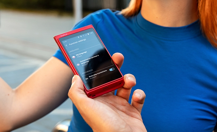 Ainoa pikakääntäjä äänenkloonausteknologialla, puhelujen käännöksellä ja hands-free-tilalla.