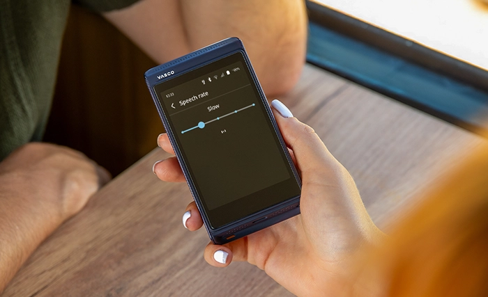 Säädä toiston nopeutta tarpeisiisi sopivaksi. Hidasta tarttuaksesi jokaiseen yksityiskohtaan tai nopeuta, kun on kiire. Vasco sopeutuu tahtiisi, joten käännöksistä ei jää mitään pois.