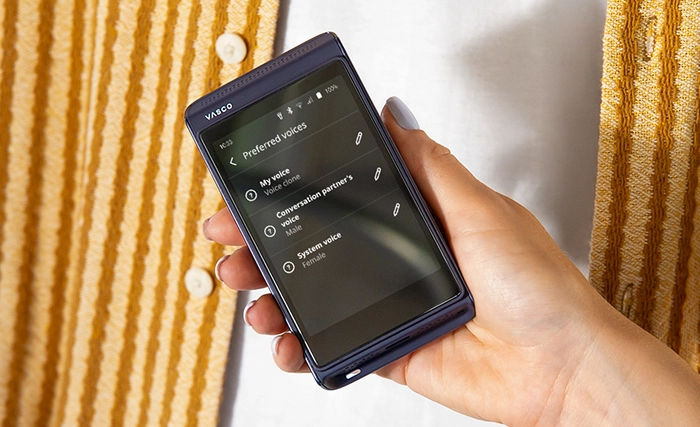 Niille, jotka arvostavat vaihtoehtoja. Vallankumouksellisen Vasco My Voice -ominaisuuden lisäksi voit valita myös perinteisen mies- tai naisäänen lukemaan käännökset. Näin voit sovittaa äänensävyn tilanteeseen sopivaksi: virallisempi sävy liiketapaamisiin tai lämpimämpi perhekeskeisiin keskusteluihin. Sinun kääntäjäsi – sinun sääntösi.